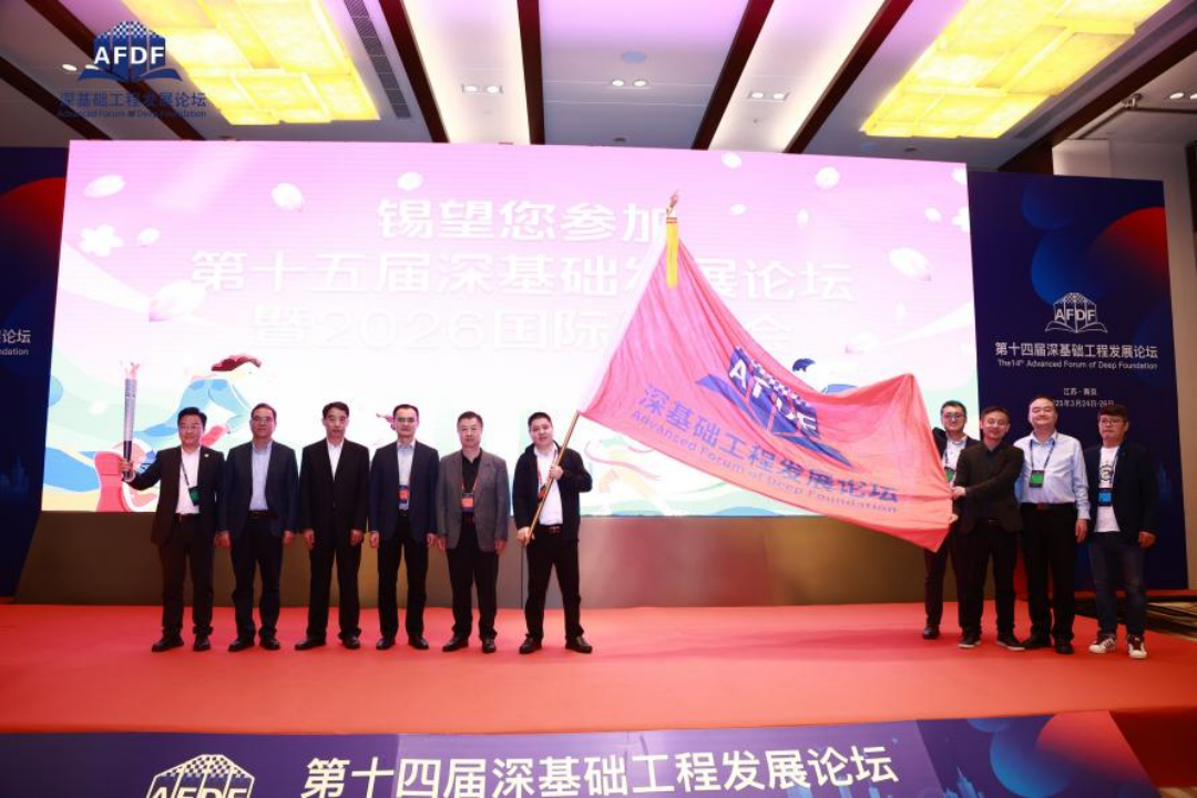 2025年3月26日,在南京第十四屆深基礎(chǔ)工程發(fā)展論壇圓滿閉幕之際,大會正式宣布下一屆盛會--第十五屆深基礎(chǔ)工程發(fā)展論壇暨2026中國國際深基礎(chǔ)工程技術(shù)裝備交易會(簡稱2026國際深交會)將于2026年在江蘇無錫舉辦。本屆論壇由樁工陸英會擔(dān)任承辦單位,江蘇泰信機械股份有限公司(以下簡稱“泰信機械”)董事長、樁工陸英會會長辛鵬代表協(xié)會在閉幕式上接過會旗,并向全球行業(yè)同仁發(fā)出邀請:“明年相聚無錫,共繪深基礎(chǔ)工程新藍圖!”。
