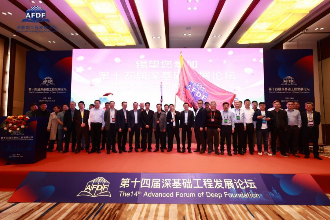 【概要描述】2025年3月26日,在南京第十四屆深基礎(chǔ)工程發(fā)展論壇圓滿閉幕之際,大會正式宣布下一屆盛會--第十五屆深基礎(chǔ)工程發(fā)展論壇暨2026中國國際深基礎(chǔ)工程技術(shù)裝備交易會(簡稱2026國際深交會)將于2026年在江蘇無錫舉辦。本屆論壇由樁工陸英會擔(dān)任承辦單位,江蘇泰信機械股份有限公司(以下簡稱“泰信機械”)董事長、樁工陸英會會長辛鵬代表協(xié)會在閉幕式上接過會旗,并向全球行業(yè)同仁發(fā)出邀請:“明年相聚無錫,共繪深基礎(chǔ)工程新藍圖!”。